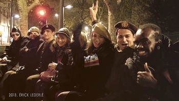 Nous pouvons entendre "Dépêchez-vous, plus vite !" accompagné d'une sirene alertant des obus et des balles, alors que nous commençons à descendre les escaliers. Une soirée pleine de surprises dans un lieu exceptionnel, constitué : de béton, de graffs et d'une odeur de poudre à canon à faire froid dans le dos !
