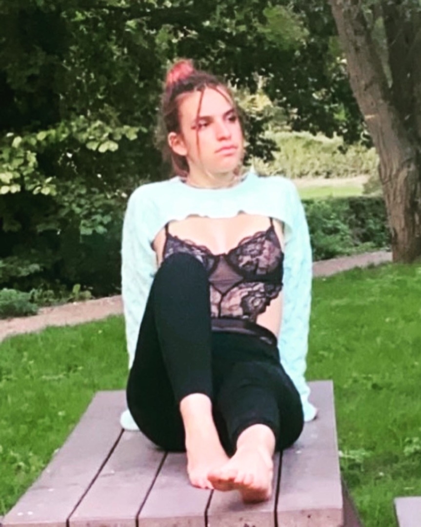 J’ai des cheveux coloré, avec un piercing à l’oreille