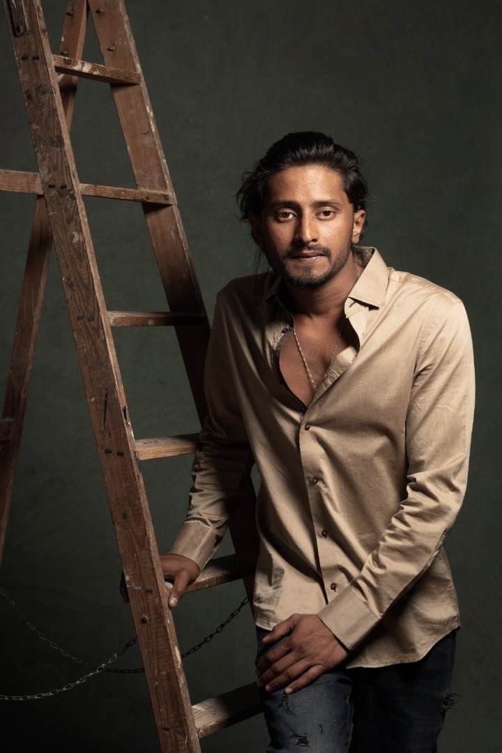 Striking masculine features, Strong bone structure, Intense, expressive gaze, Clean profile with defined jaw, Natural on-camera confidence, Natural screen presence, Expressive face suitable for close-ups, Calm yet intense demeanor, Versatile look (urban/international)