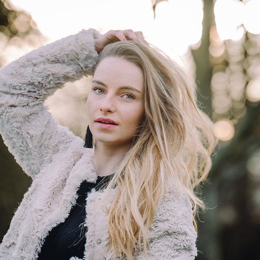Modèle lors d’un shooting photo. Shooting réalisé en extérieur (forêt, bord de lac)
