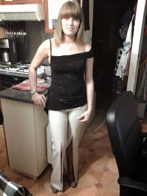 Très souriante, percing au nombril, tatouage sur l'épaule droite(dauphin), la cheville gauche(rose avec initial), la fesse droite (bouche en couleur rouge) et en bas du dos (un infini)