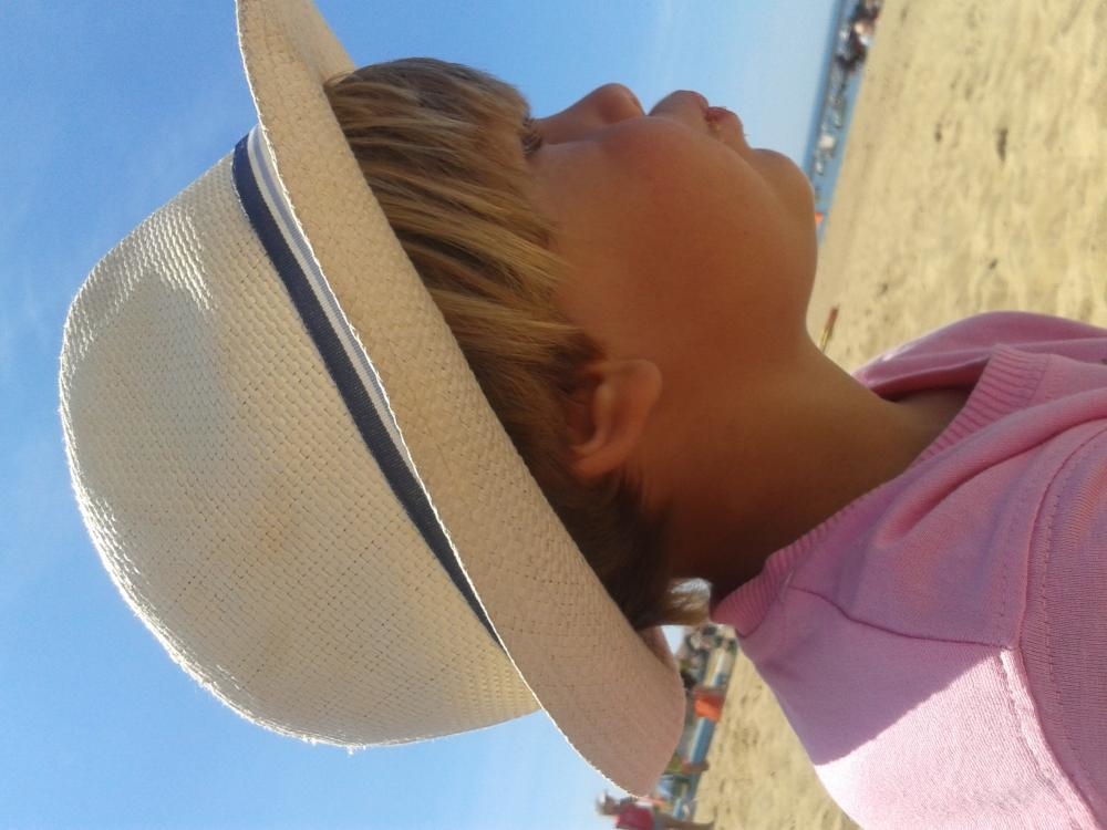 enfant très souriant et agréable,cheveux certain clair avec des pêches blondes naturelles et une coupe boule.