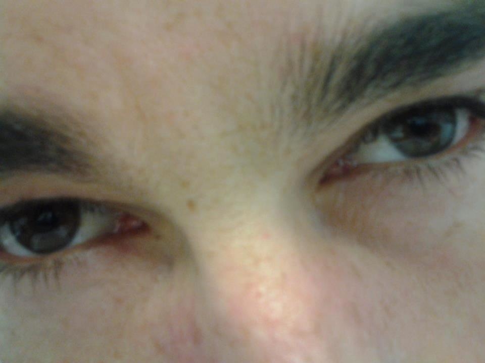 Regard intense et émotionnel avec 3 points qui forme un arc sous la rétine à l'oeil droit .