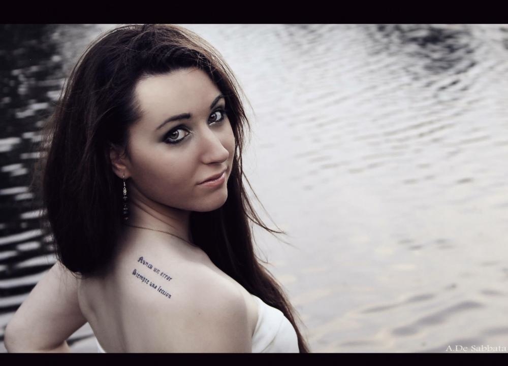 Piercing nombril , tatouage bas du dos et épaule