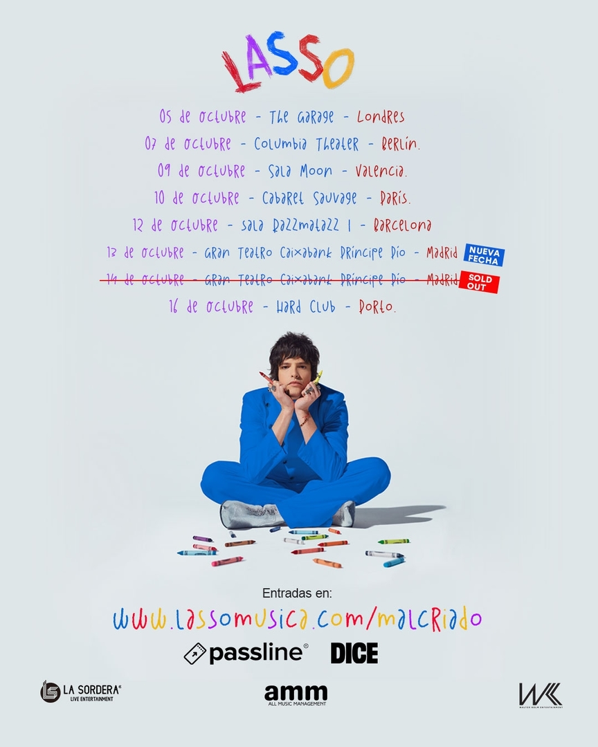 Lors de sa tournée européenne, Lasso se produira à Londres, Berlin, Porto et Valence avant d’arriver à Paris, où il donnera son spectacle au Cabaret Sauvage le 10 octobre. Le concert à Paris promet d’être une soirée exceptionnelle, avec un répertoire soigneusement sélectionné de son album MALCRIADO, comprenant 13 chansons pleines d’énergie et d’émotions.
