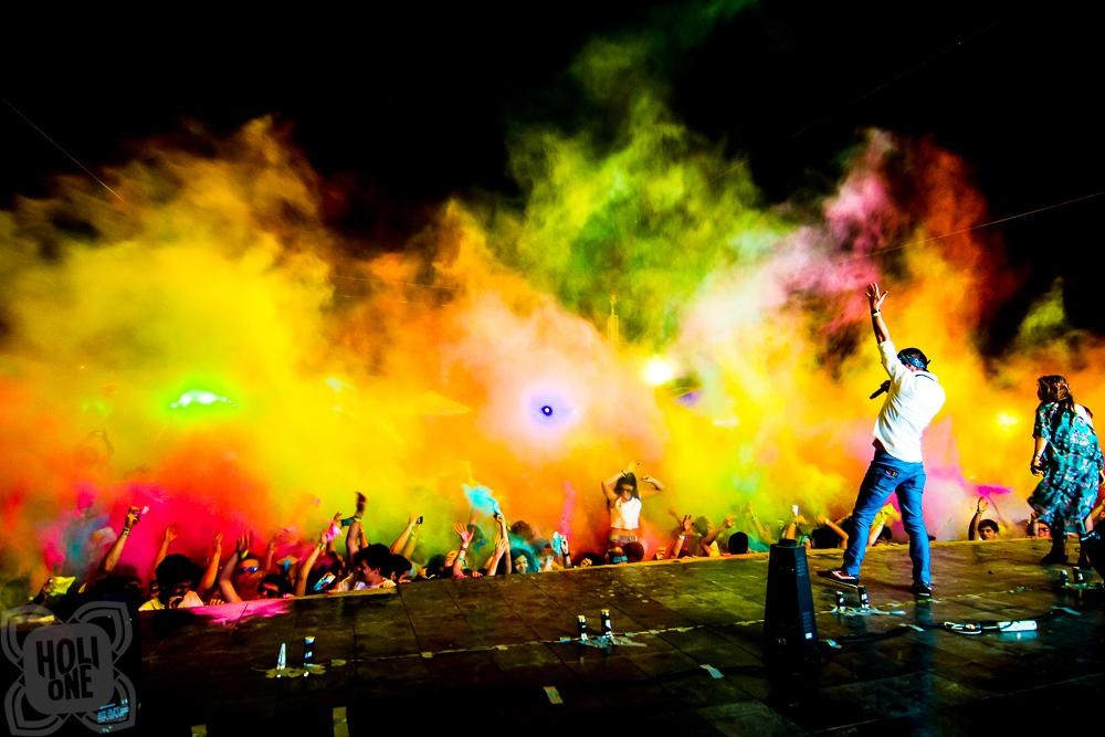Le 20 septembre, des milliers de personnes vêtues de blanc se rapprochent lors du festival des couleurs HOLI ONE, en dansant au rythme de la musique, tous célèbrent pacifiquement les uns avec les autres et à la fin tous sont uniformément colorés .