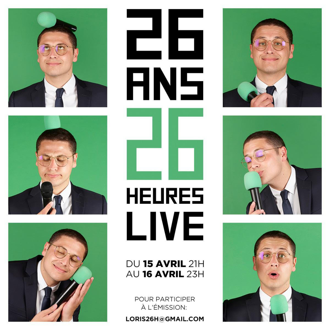26 heures de live pour fêter ses 26 ans ! Rendez vous avec Loris Giuliano mercredi 15 avril à 21H, connectez vous