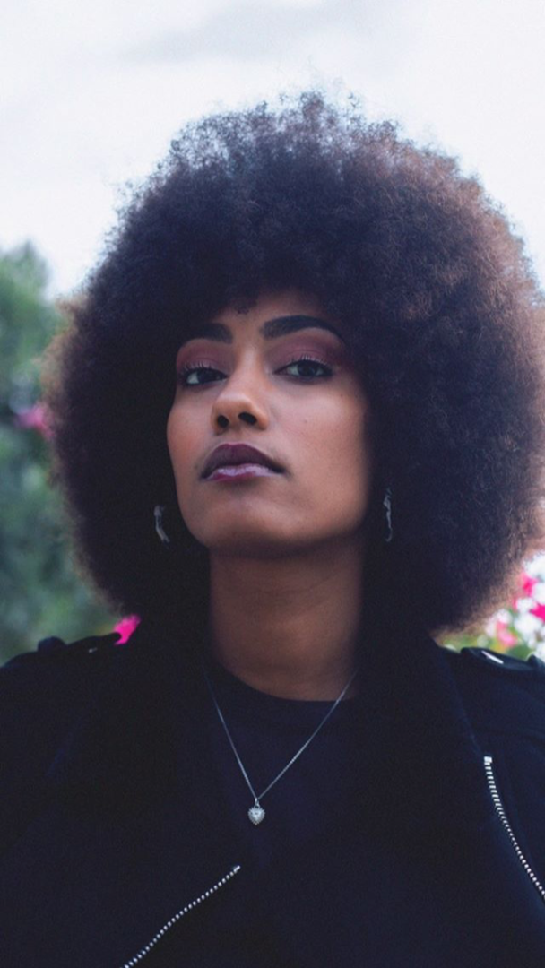 Cheveux pouvant avoir toutes les formes (lisses, frisés, bouclés, afro, nattés etc...)