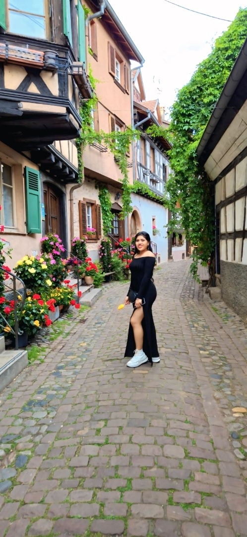 Peau foncée, grands yeux, taille moyenne, j'ai un grain de beauté sur la joue.