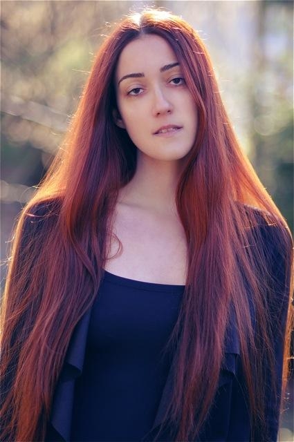 - Très longue chevelure rousse, légèrement ondulée