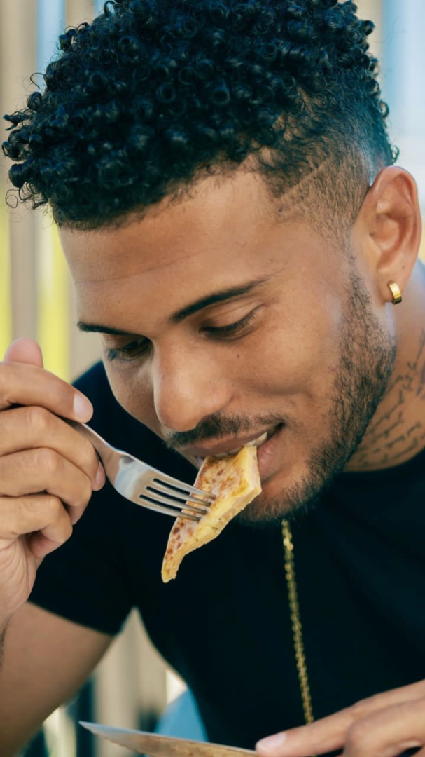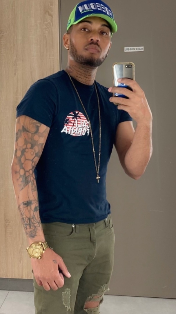 Tatouages (cou, bras gauche, torse, cotes) et piercings (oreilles)