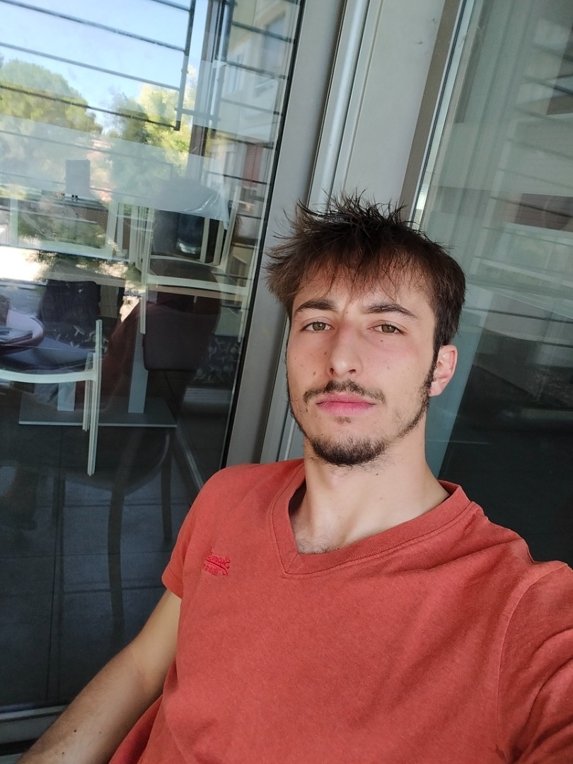 Sportif, souriant,regard endoctrinant.