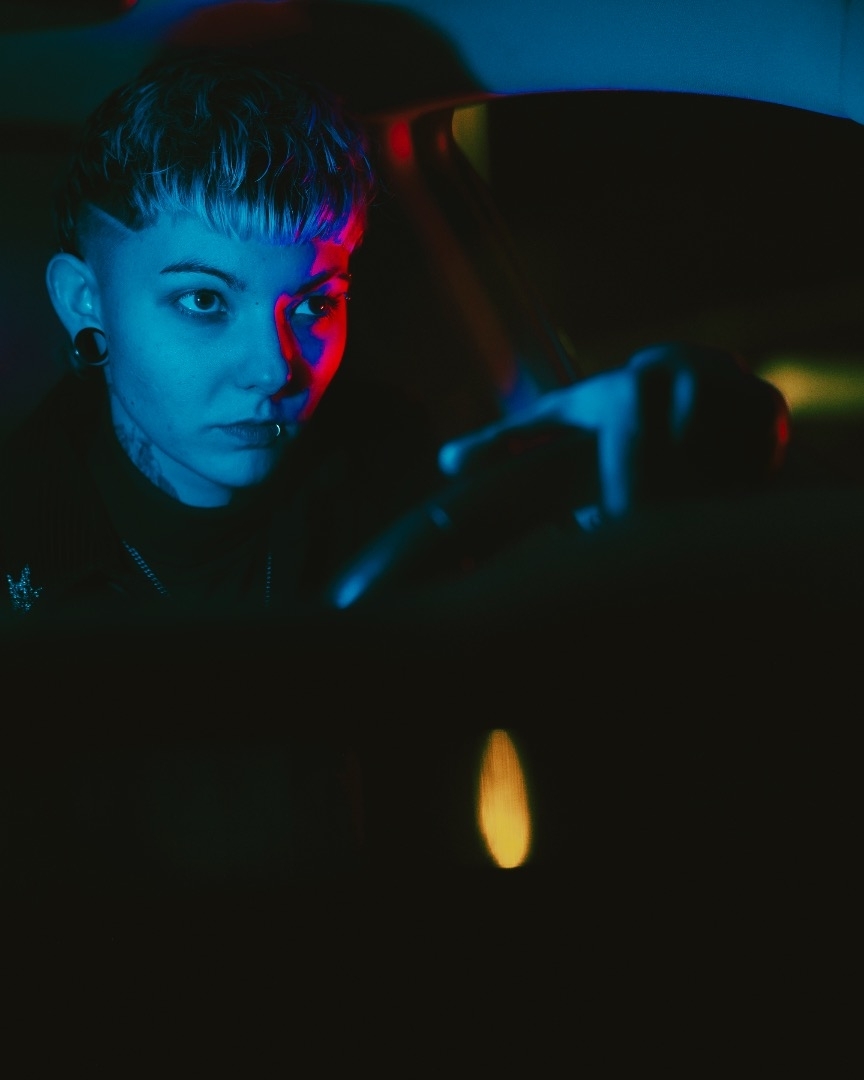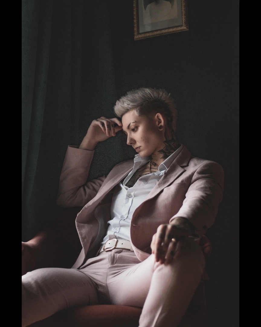 Profil androgyne, à l’aise face à la caméra.