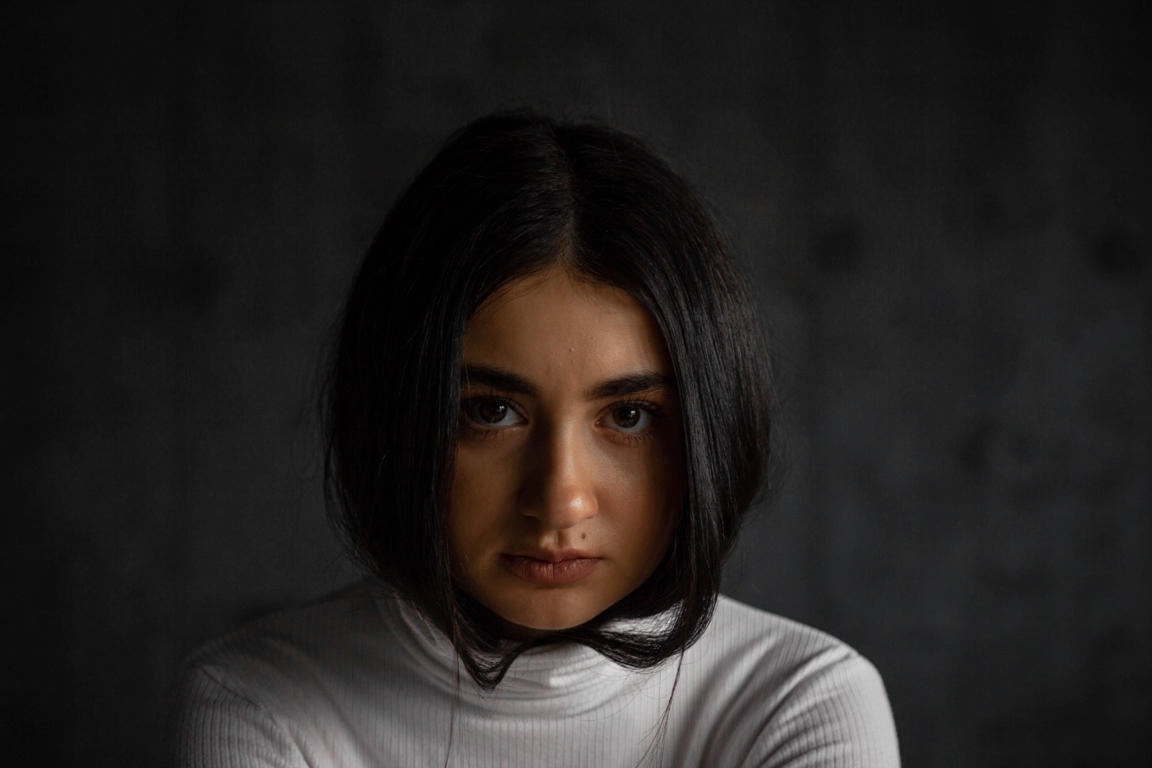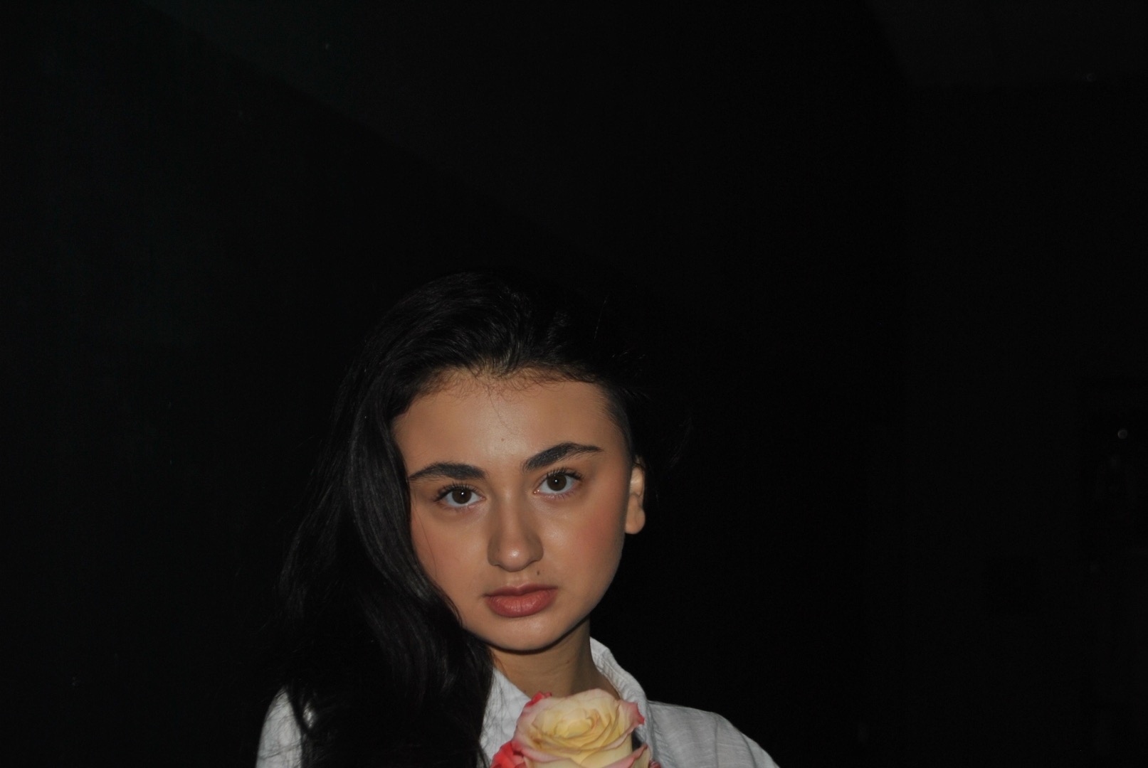 I have dark eyebrows, brown eyes, and naturally curly dark hair. I also have a small beauty mark above my lip, which is one of my distinctive features. My appearance is often described as having an elegant Eastern-type look — expressive, warm, and memorable. I am Ukrainian, and I combine a natural softness with strong features. I can sing, and I am highly adaptable: I am willing to learn any skill required for a role or creative project.