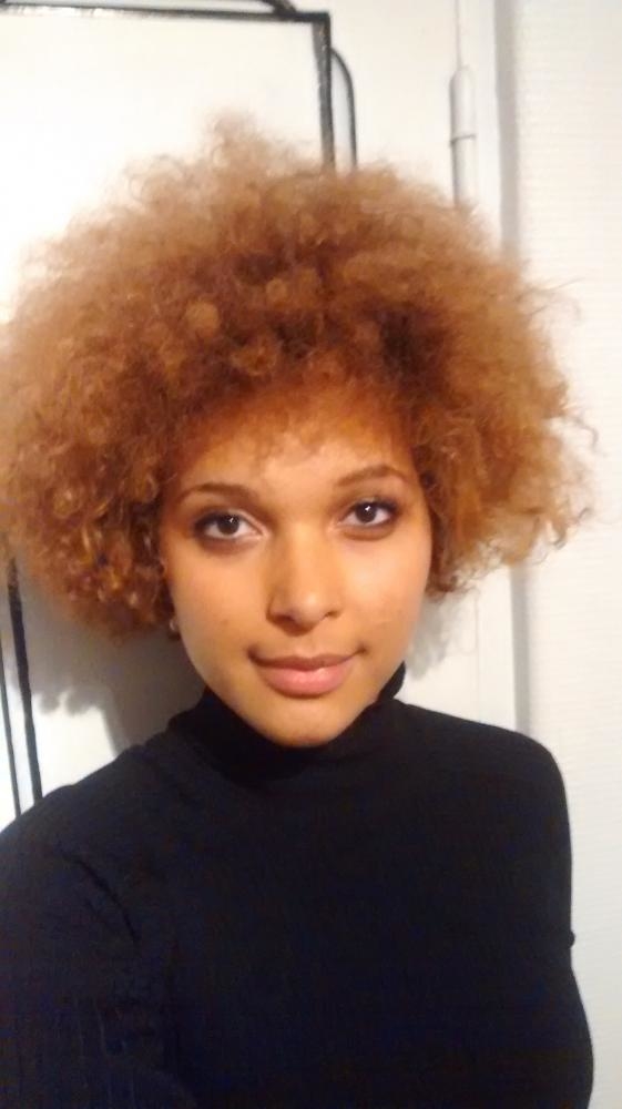Je suis métisse cap verdienne et russe , j'ai les cheveux roux (décoloration ) j'ai un afro ,toujours entrain de sourrire , un grain de beauté sur une de mes lèvres , j'ai les yeux en amende. J'ai toujours une sucette fourré dans mon sac ou a la bouche