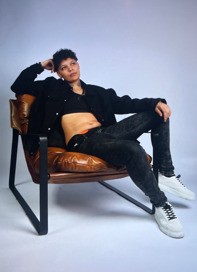 Je suis très solaire, souriante, j’ai une énergie débordante, je sais m’adapter à toutes situations avec calme. Piercing au nez, tatouage sur le corps. Boucle d’oreille, oreille droite.