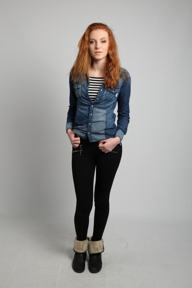 un regard profond je suis élancée en jambe (1m9 hanche comprise). Cheveux blond vénitien roux (